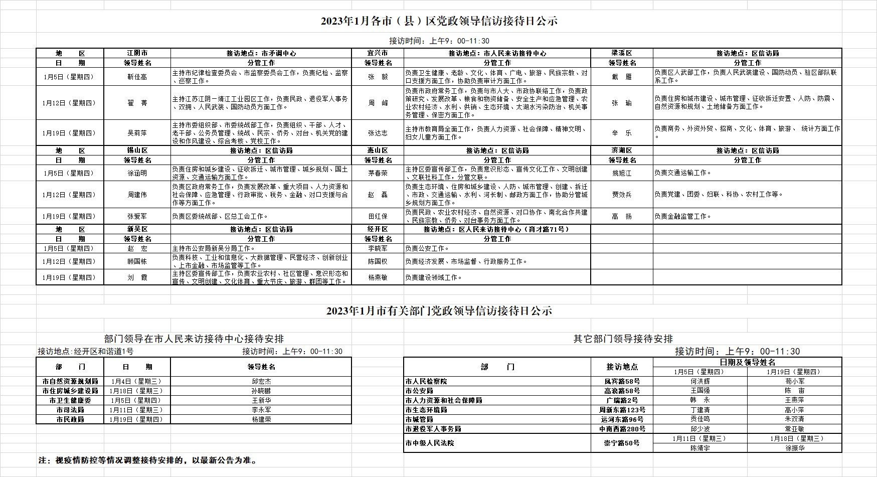 2023年1月各市(县)区党政领导信访接待日公示